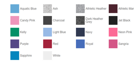 - 50/50 cotton/poly (Dark Heather, Safety Green, Safety Pink)
