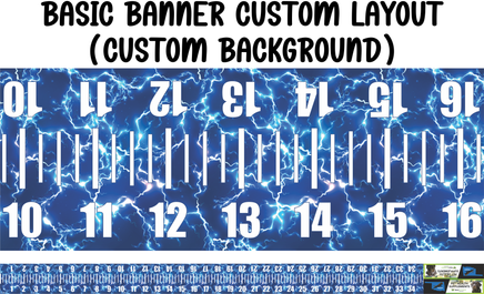 You can choose you own colors for the background, numbers, and tick marks. Add a print ready logo for $25. Want a more customized banner? We can do that too! Art services start at $50. You will be given an estimate prior to mockup.