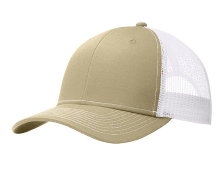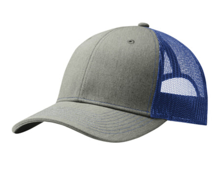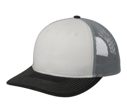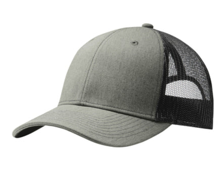 - Fabric: 100% cotton twill front panels and bill (Solids); 65/35 polyester/cotton twill front panels and bill (Heathers); 100% polyester mesh mid and back panels